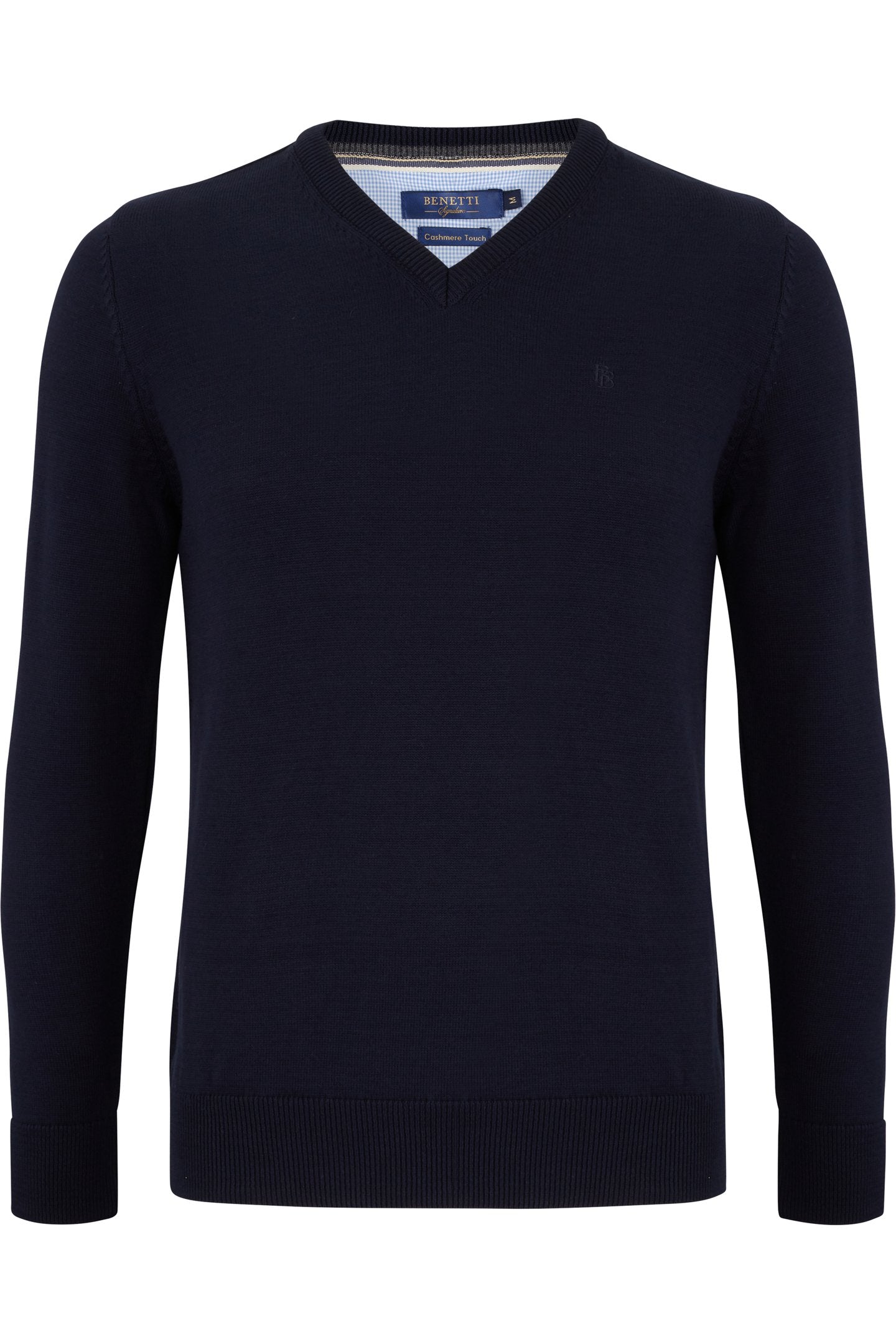 An essential v-neck sweater by Benetti Menswear in an elegant cotton-blend for a comfortable fit. This Navy sweater is detailed with the iconic Benetti logo on the chest. Wear this versatile piece with everything from denims, chinos, tailoring to outerwear.